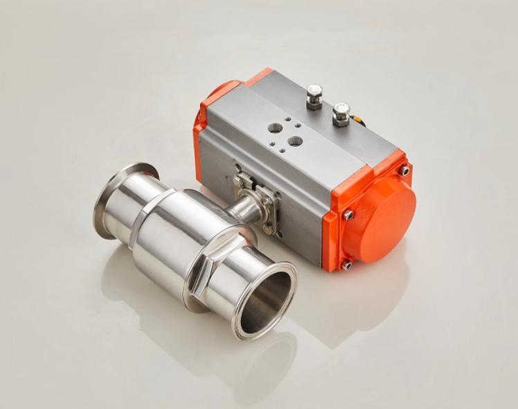 配套单作用或双作用气动执行机构,以0.4-0.7MPa压缩空气为动力源,可实现快速启停控制,球体90°回转即可完成全开/全关动作,响应速度快,适配频繁操作的卫生级生产工况。支持搭配电磁阀、定位器、行程开关等附件,可接收4-20mA控制信号实现比例流量调节,同时具备阀位信号反馈功能,能无缝接入自动化生产控制系统,实现远程集中控制。单作用执行机构具备失气保护功能(失气时自动复位至开/关安全位置),双作用执行机构可选配手轮机构,保障气源故障时手动应急操作,提升生产连续性与安全性。
