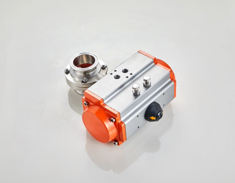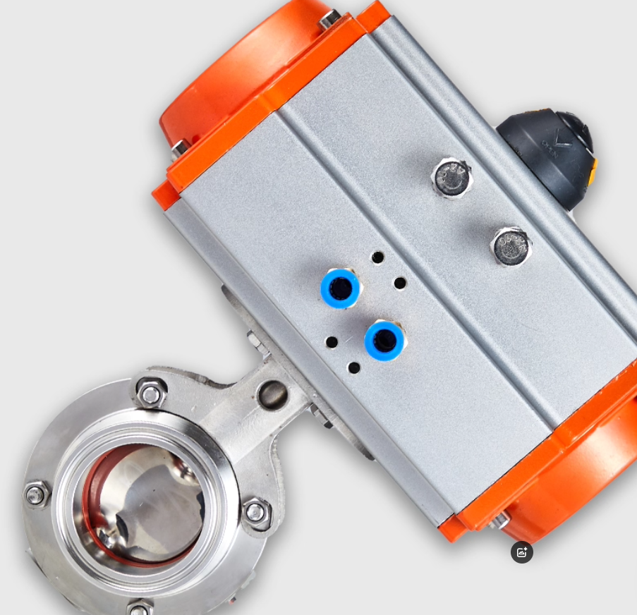 配套单作用或双作用气动执行机构,以0.4-0.7MPa压缩空气为动力源,可实现快速启停控制,蝶板90°回转即可完成全开/全关动作,响应速度快,适配频繁操作的卫生级生产工况。支持搭配电磁阀、定位器、行程开关等附件,可接收4-20mA控制信号实现比例流量调节,流量特性趋近直线,调节精度高,同时具备阀位信号反馈功能,能无缝接入自动化生产控制系统,实现远程集中控制。单作用执行机构具备失气保护功能(失气时自动复位至开/关安全位置),双作用执行机构可选配手轮机构,保障气源故障时手动应急操作,提升生产连续性与安全性。